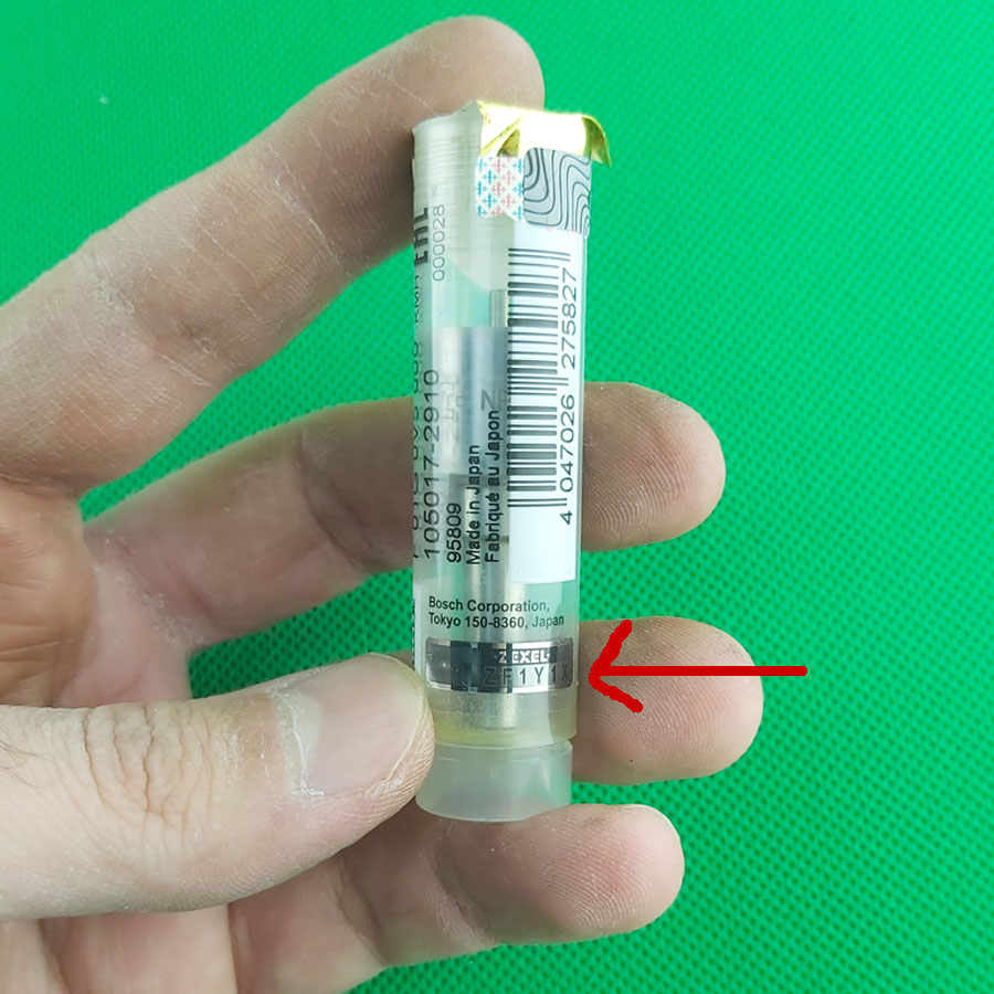 همینطور که در تصویر بالا میبینید از روی کپسول یا همون قوطی سوزن میشه راحت لیبیل اصالت کالا رو دید که با فلش توی عکش به شما نشون دادیم یه هلوگرام نقره ای که روش نوشته ZEXEL اما اگر از روی خود سوزن میخاید تشخیص بدید که سوزنی که خریداری کردید اصلی هست یا خیر باید خدمتتون بگم که در سالهای قبل زگسل شماره های فنی روی سوزن انژکتورو به صورت حکاکی میزد یعنی شما روش ناخن میکشیدید متوجه حکاکی میشدید و خیلی راحت میشد تشخیص داد! ولی الان به صورت حکاکی نیست تو قسمتی که با دایره روی عکس بالا به شما نشون دادیم توجه کنید که سوزن چاچی هست ولی با یه فونت کج مانند شماره فنی زده شده که این فونت مختص خود زگسل ژاپن هستش!!